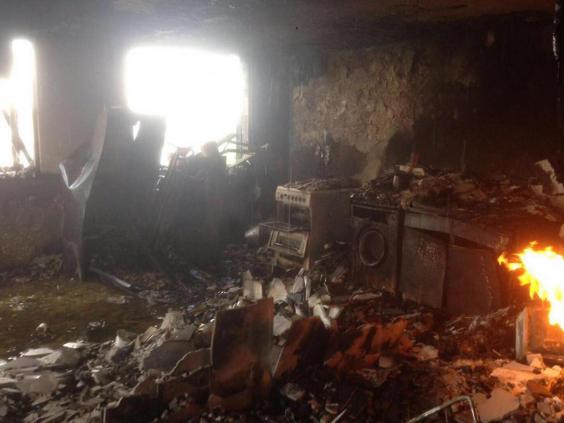 :: Search teams were forced to leave the tower when the fire restarted on Thursday afternoon.