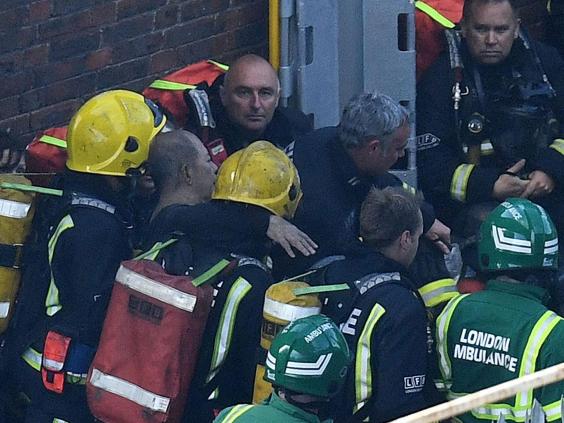As firefighters continued to hose down sporadic fires breaking out in the charred building, survivors were directed to emergency rest centres while desperately searching for news of loved ones.
