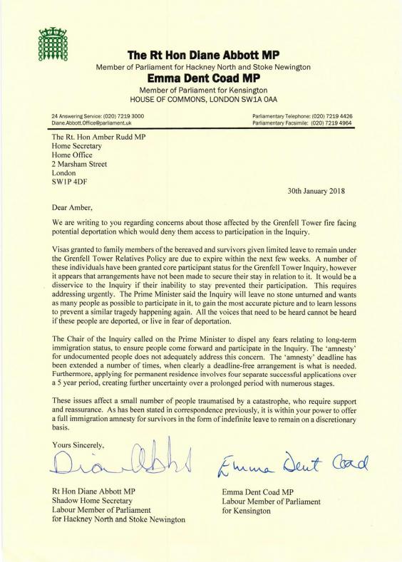 Labour has also raised concerns families of the bereaved and survivors could face deportation within weeks as their leave to remain under the Grenfell Tower Relatives Policy expires.