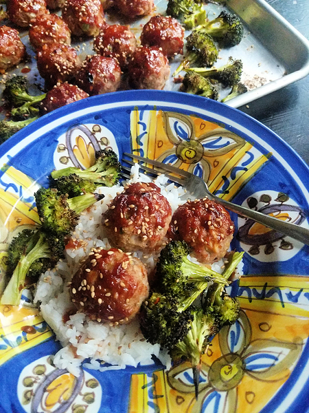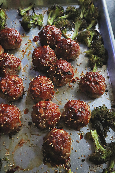 This meat-and-veggie recipe pairs turkey meatballs glazed in a homemade, spicy-sweet teriyaki-like sauce with roasted and charred broccoli. Other vegetables you could substitute or add to the pan include sliced bell peppers, Brussels sprouts, thinly sliced carrots or chunks of sweet potato or squash. If you don't feel like making homemade sauce, swap it out for bottled barbecue or teriyaki sauce.