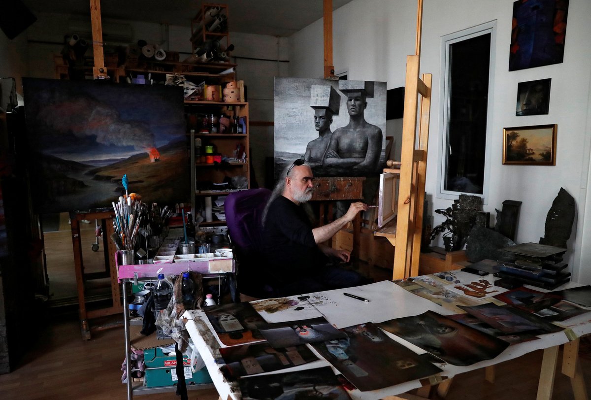 Szurcsik, who teaches at the Hungarian University of Fine Arts and is one of the country's top contemporary artists, has always tried to reflect on the relationship between the human soul and the landscape in his often surreal paintings.