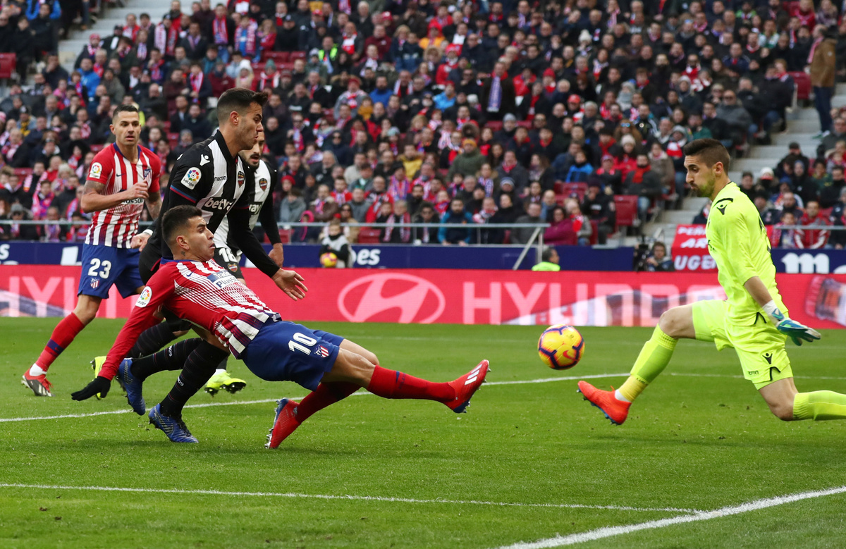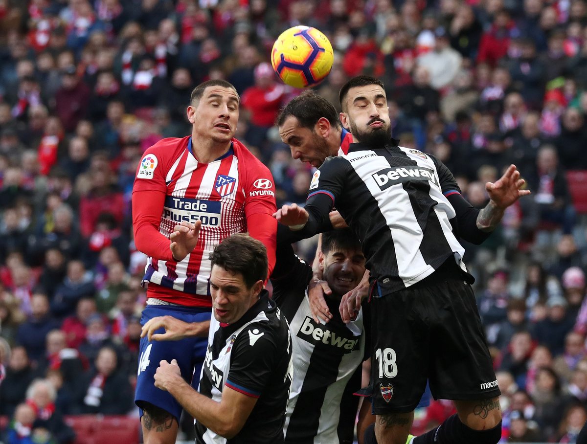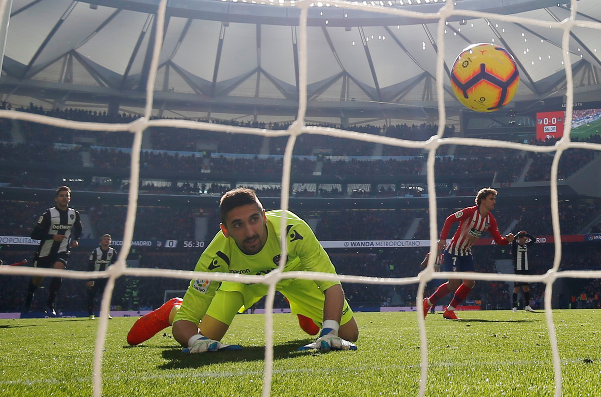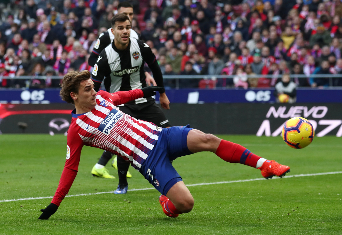 Levante, who were perhaps feeling the effects of beating Barcelona 2-1 on Thursday the Copa del Rey, produced a scrappy display but had one chance to level when Jose Luis Morales was played in. However, the forward's shot bounced off the chest of Atletico goalkeeper Jan Oblak.