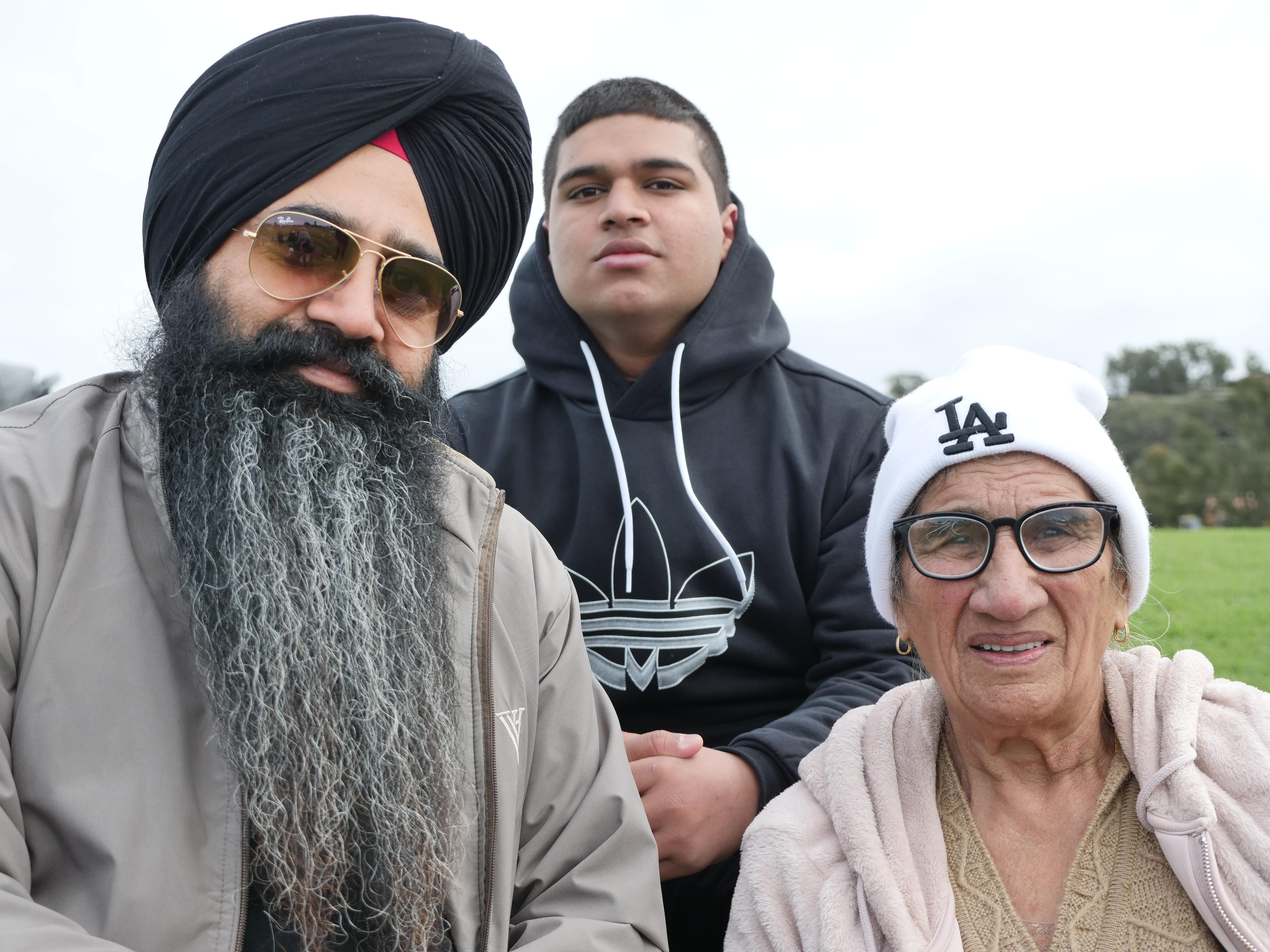 Maninder Singh Rakhra is from Canberra and brought his mother, Manjeet Kaur, who travelled all the way from India to attend the Sikh Games.
