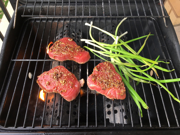 You can make a compound butter with green onions to use as a dollop on the finished tuna. And for only another moment of your time, you can add green onions to the grilled mix. With this combo, dinner will look as pretty as it is flavorful.