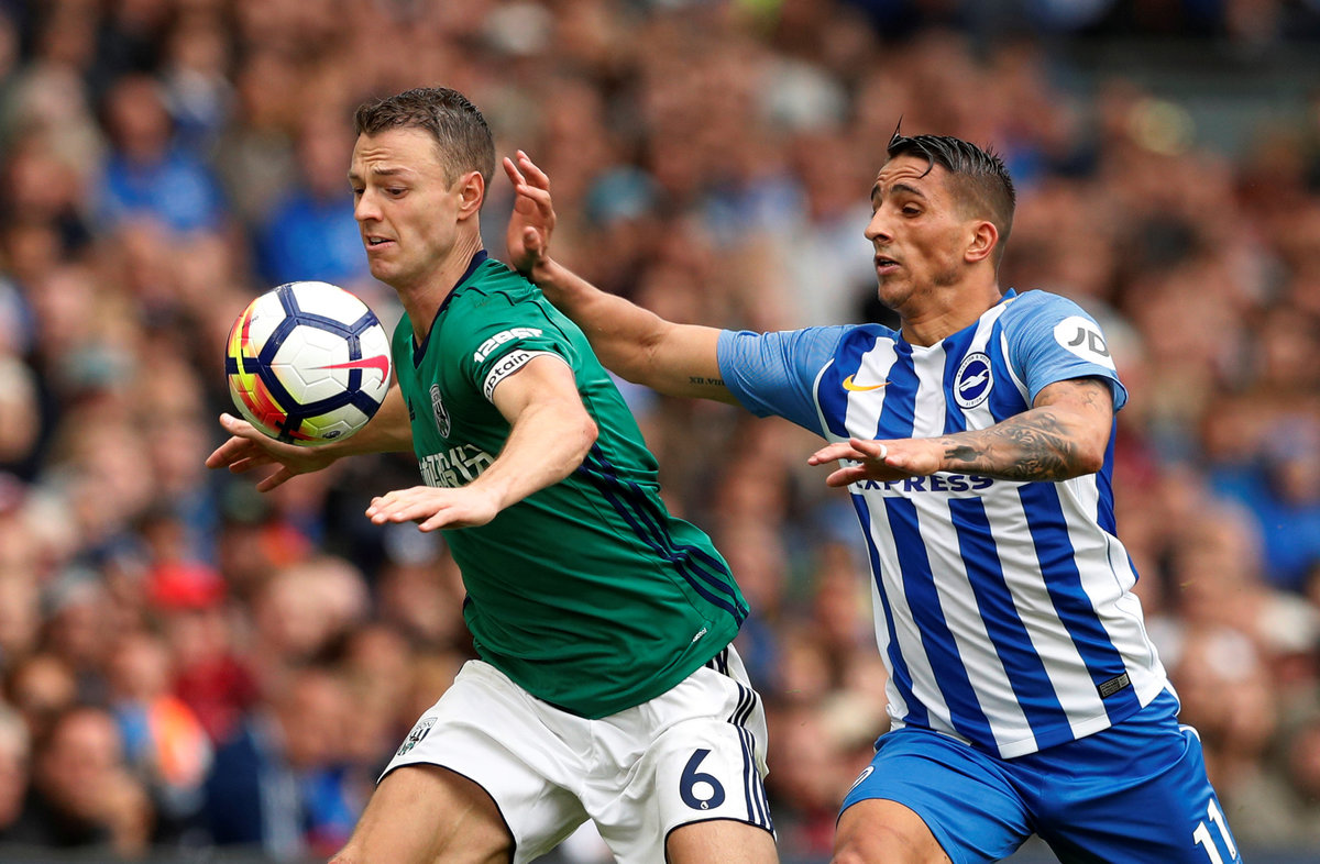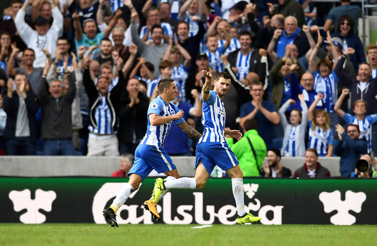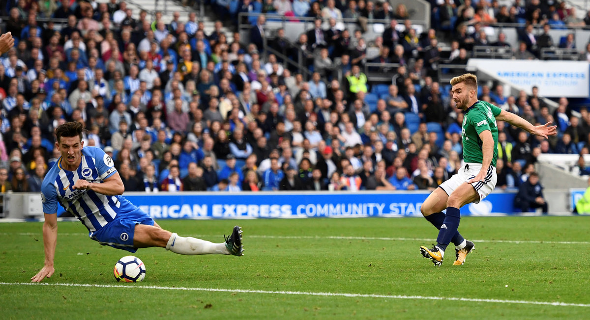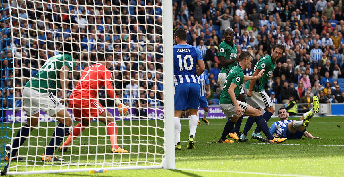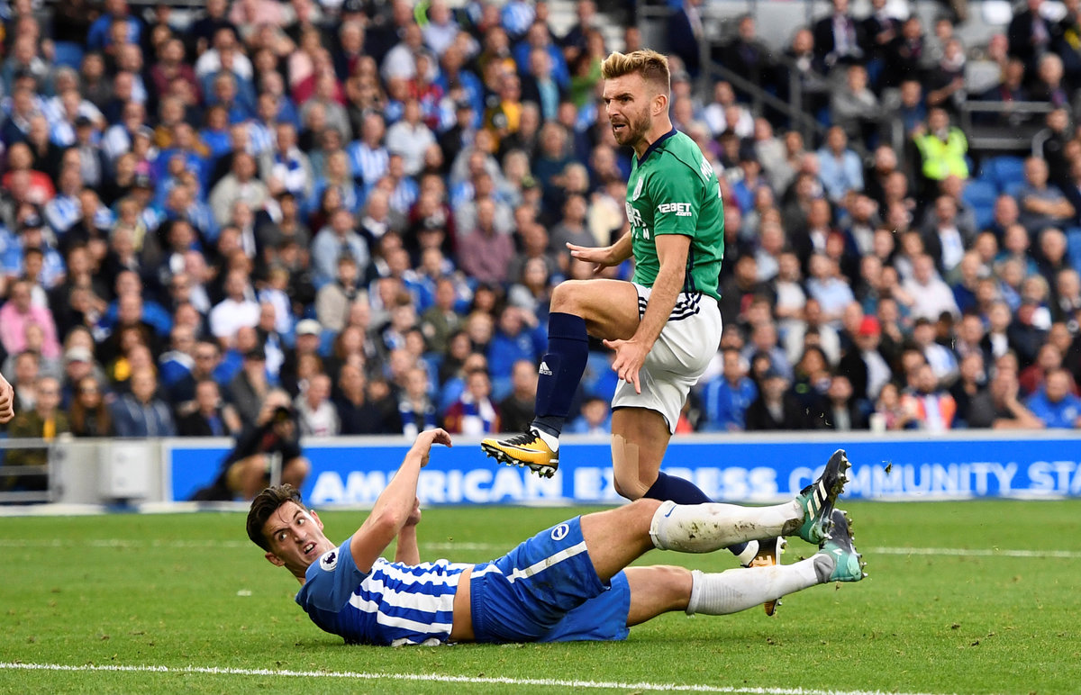 Soccer Football - Premier League - Brighton & Hove Albion vs West Bromwich Albion - Brighton, Britain - September 9, 2017 Brighton's Pascal Gross scores their first goal REUTERS/Dylan Martinez Soccer Football - Premier League - Brighton & Hove Albion vs West Bromwich Albion - Brighton, Britain - September 9, 2017 Brighton's Pascal Gross celebrates scoring their second goal with Anthony Knockaert REUTERS/Dylan Martinez Soccer Football - Premier League - Brighton & Hove Albion vs West Bromwich Albion - Brighton, Britain - September 9, 2017 West Bromwich Albion's Jonny Evans in action with Brighton's Anthony Knockaert Action Images via Reuters/John Sibley Soccer Football - Premier League - Brighton & Hove Albion vs West Bromwich Albion - Brighton, Britain - September 9, 2017 Brighton's Matthew Ryan saves a shot from West Bromwich Albion's James Morrison REUTERS/Dylan MartinezSoccer Football - Premier League - Brighton & Hove Albion vs West Bromwich Albion - Brighton, Britain - September 9, 2017 West Bromwich Albion's James Morrison scores their first goal REUTERS/Dylan Martinez Soccer Football - Premier League - Brighton & Hove Albion vs West Bromwich Albion - Brighton, Britain - September 9, 2017 West Bromwich Albion's Kieran Gibbs in action with Brighton's Anthony Knockaert and Dale Stephens REUTERS/Dylan Martinez Soccer Football - Premier League - Brighton & Hove Albion vs West Bromwich Albion - Brighton, Britain - September 9, 2017 West Bromwich Albion's James Morrison scores their first goal REUTERS/Dylan Martinez