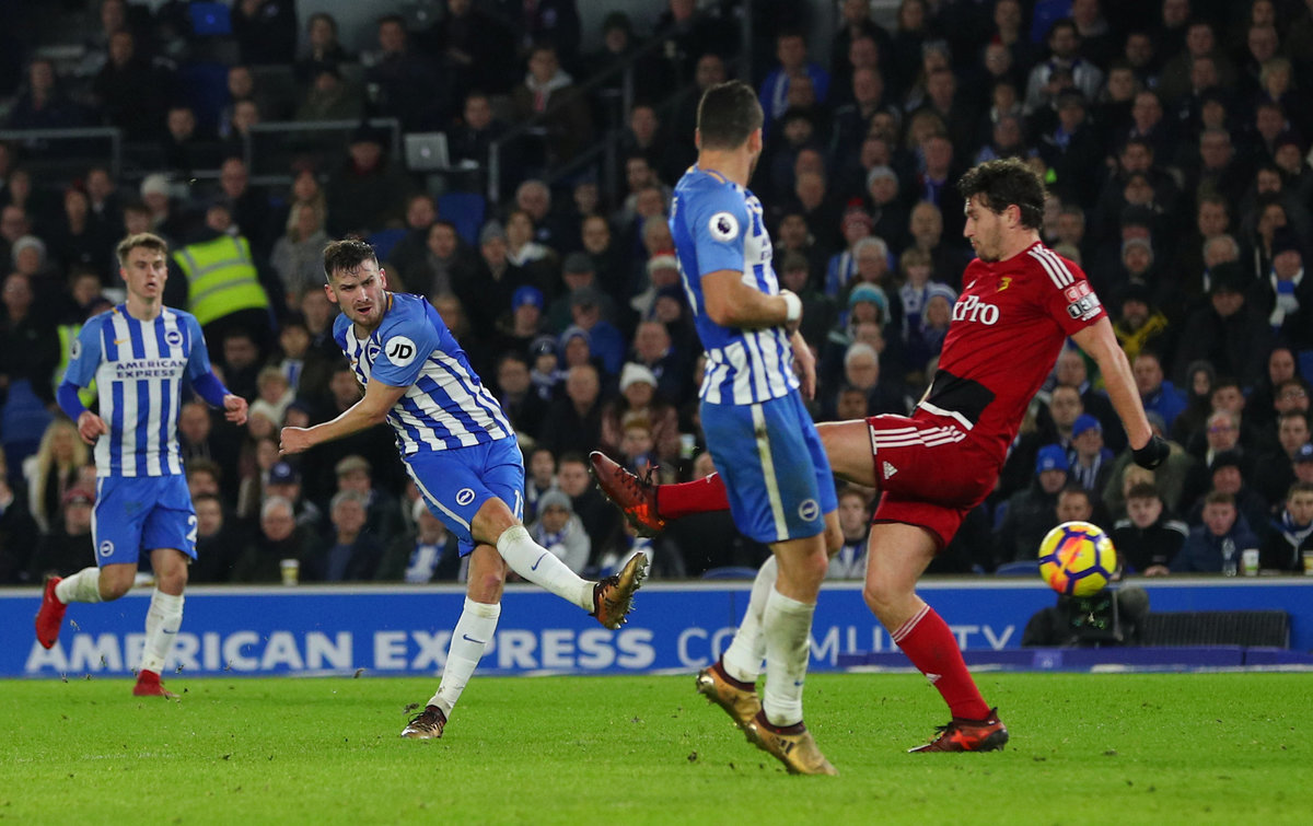 Gross delighted the home fans with a fierce low shot from the edge of the penalty area in the 64th minute, as it squeezed through Watford goalkeeper Heurelho Gomes's hands and lifted Brighton into 12th place on 21 points from 19 games.