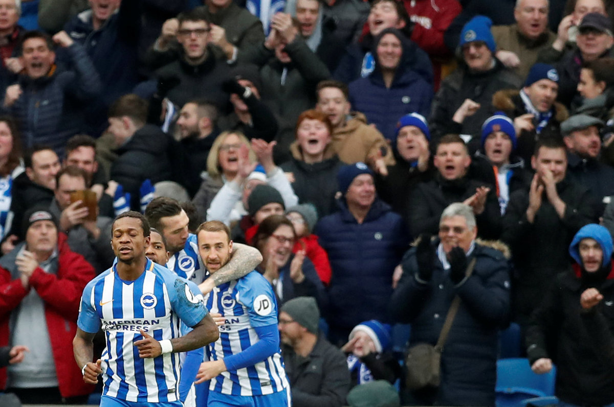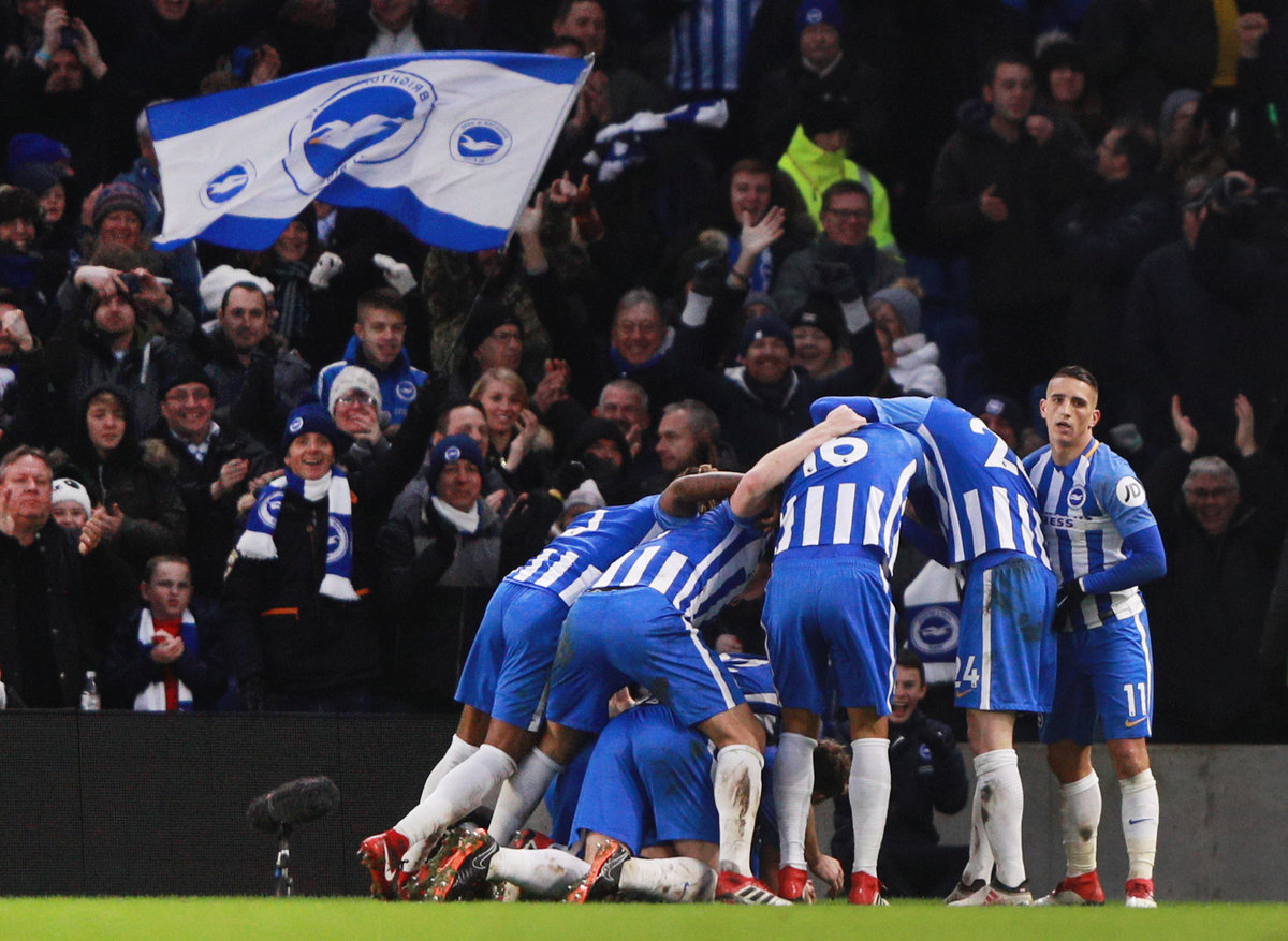 Soccer Football - Premier League - Brighton & Hove Albion vs West Ham United - The American Express Community Stadium, Brighton, Britain - February 3, 2018 Brighton’s Jose Izquierdo (not pictured) scores their second goal Action Images via Reuters/Matthew Childs
