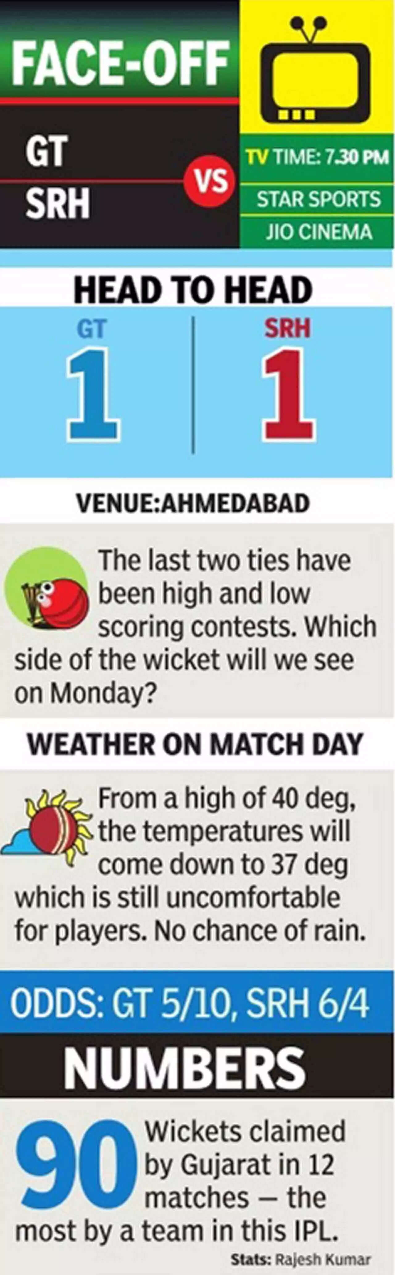 1/10:IPL: Gujarat Titans look to seal play-off berth vs Sunrisers Hyderabad