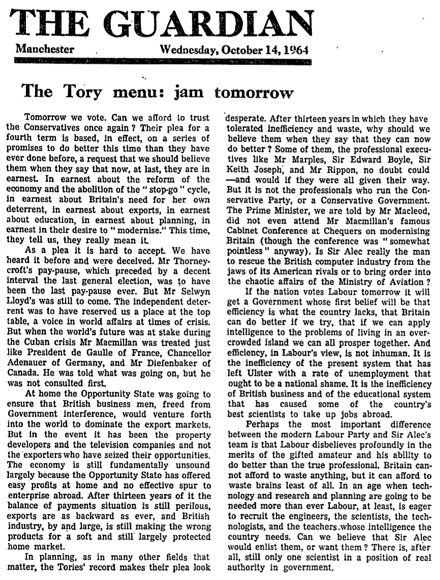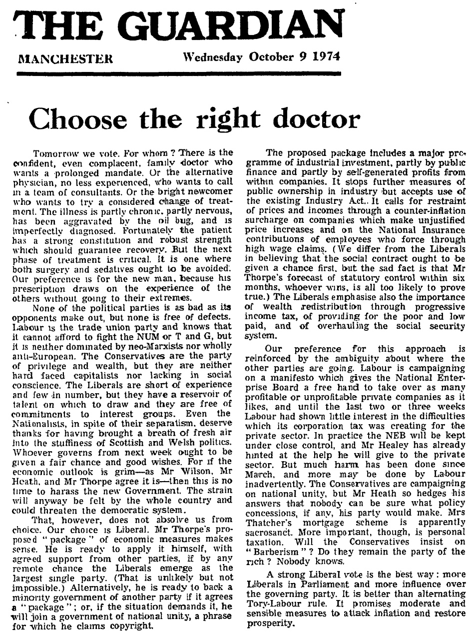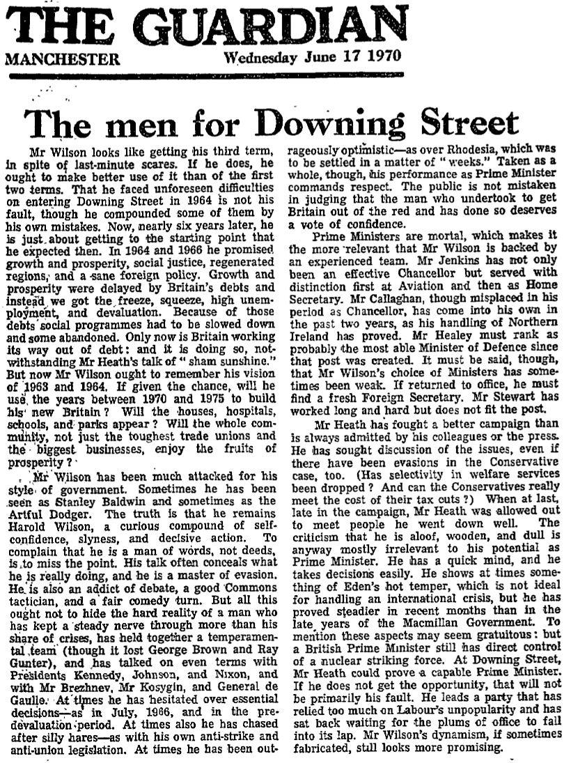 ‘[Mr Heath] leads a party that has relied too much on Labour’s unpopularity and sat back waiting for the plums of office to fall into its lap. Mr Wilson’s dynamism, if sometimes fabricated, still looks more promising.’