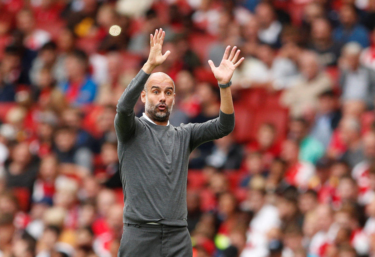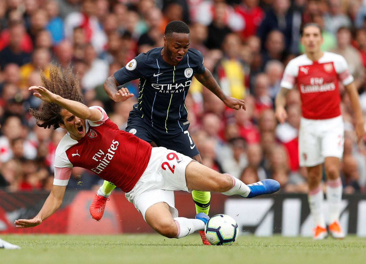 Soccer Football - Premier League - Arsenal v Manchester City - Emirates Stadium, London, Britain - August 12, 2018 Arsenal's Matteo Guendouzi in action with Manchester City’s Raheem Sterling Action Images via Reuters/John Sibley Soccer Football - Premier League - Arsenal v Manchester City - Emirates Stadium, London, Britain - August 12, 2018 Manchester City manager Pep Guardiola Action Images via Reuters/John SibleySoccer Football - Premier League - Arsenal v Manchester City - Emirates Stadium, London, Britain - August 12, 2018 Manchester City manager Pep Guardiola Action Images via Reuters/John Sibley