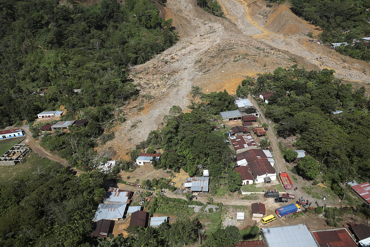 With the first break from days of relentless rain allowing more access, helicopters buzzed in and out of the village and surrounding hamlets, bringing supplies and rescue workers who recovered at least six bodies, even as new landslides endangered more lives.