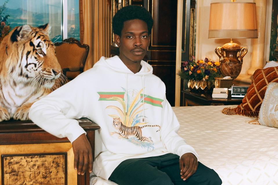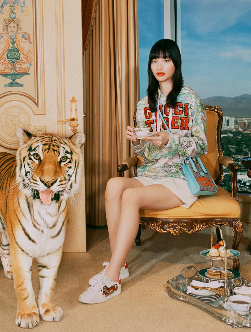 Gucci has put out a campaign showing a tiger partaking in a brunch hour high tea at a retro, luxury hotel while guest [models] wear items and accessories from the new Gucci Tiger collection. The campaign is the brainchild of Michele as the creative director and photographer and director Angelo Pennetta, who art directed the campaign film.