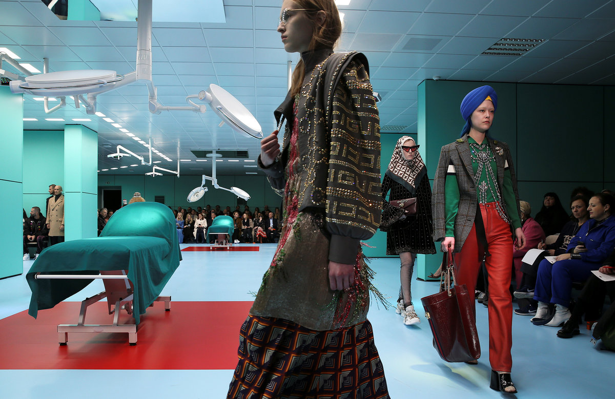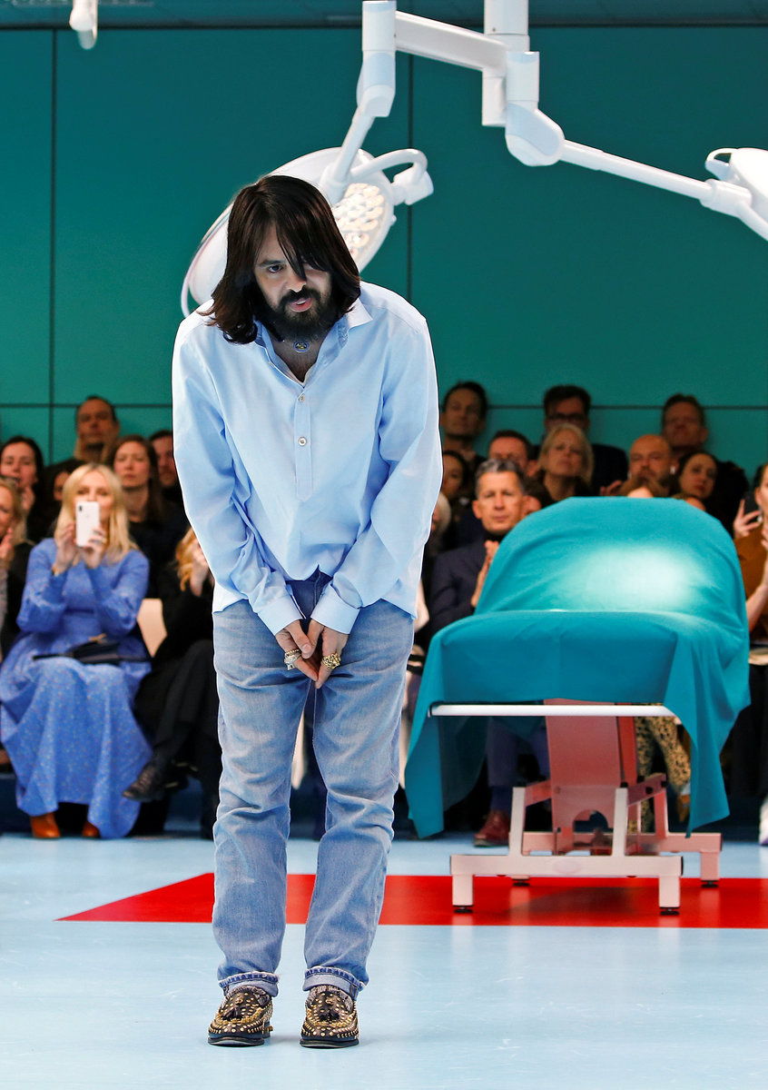 Gucci's creative director Alessandro Michele framed his display -- one of the most sought after tickets in Milan's fashion week - in a cold, sterile and claustrophobic space that replicated an operating theater.