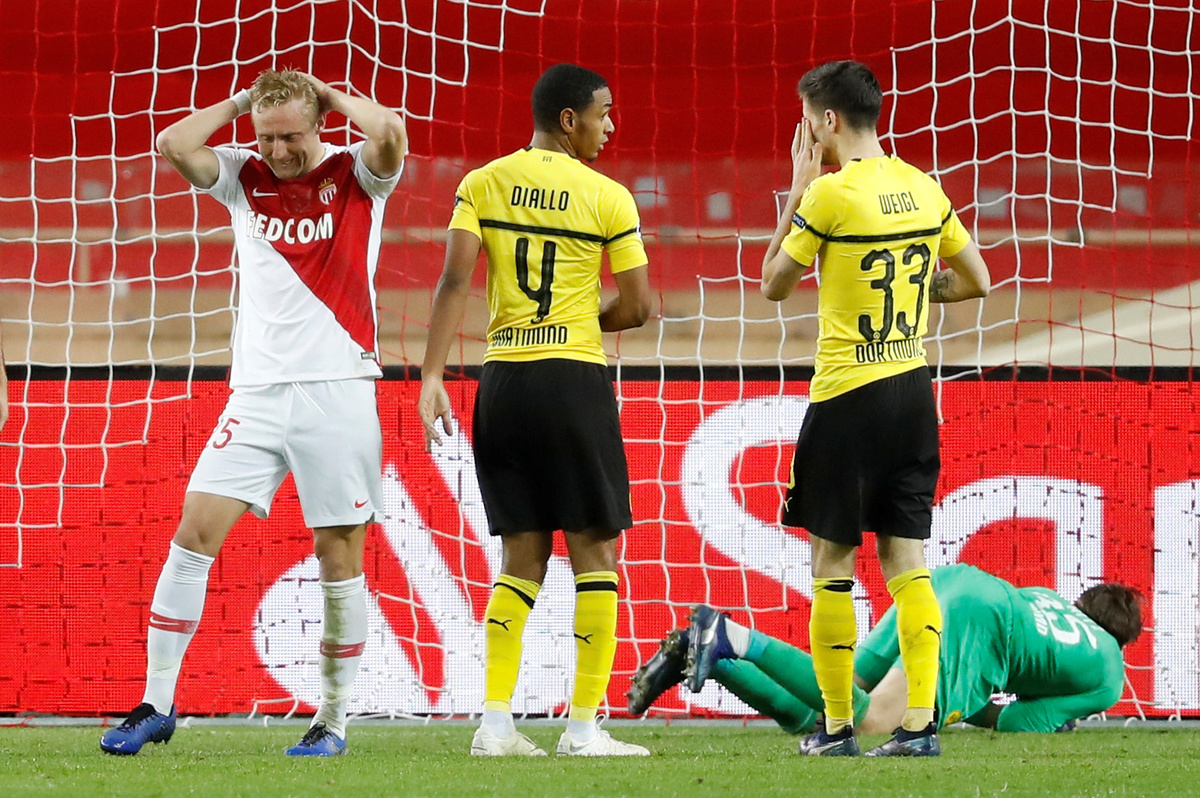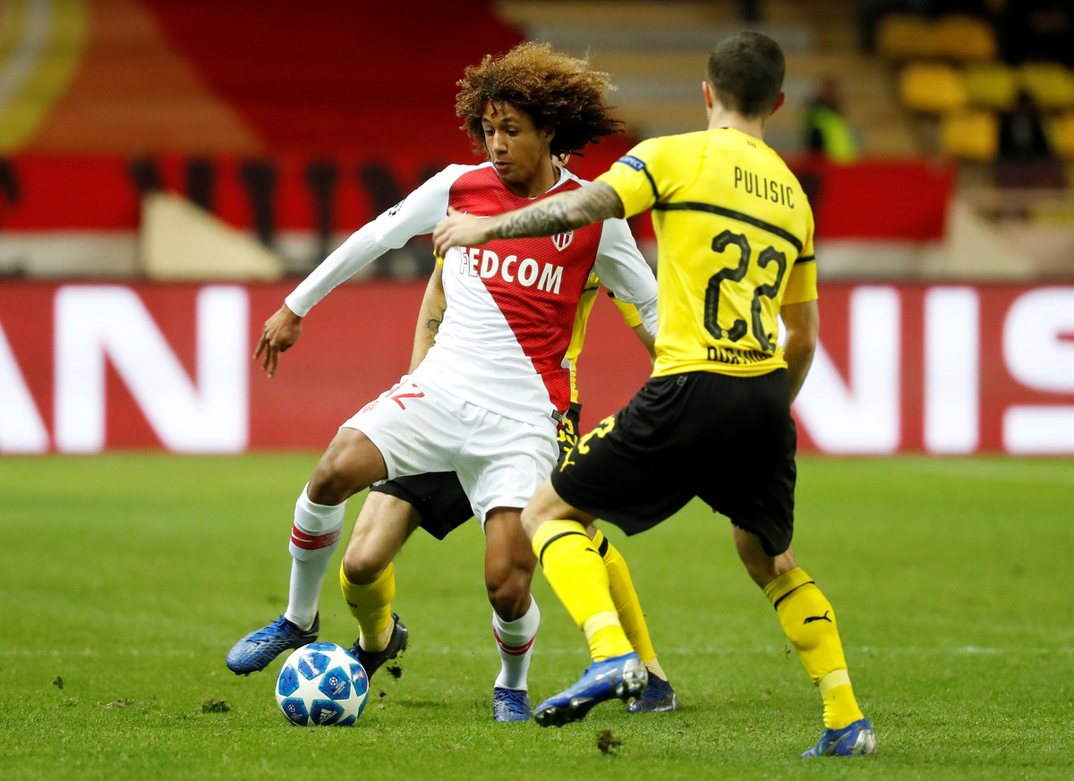 Soccer Football - Champions League - Group Stage - Group A - AS Monaco v Borussia Dortmund - Stade Louis II, Monaco- December 11, 2018 Borussia Dortmund's Christian Pulisic in action with AS Monaco's Radamel Falcao REUTERS/Eric GaillardSoccer Football - Champions League - Group Stage - Group A - AS Monaco v Borussia Dortmund - Stade Louis II, Monaco- December 11, 2018 AS Monaco's Han-Noah Massengo in action with Borussia Dortmund's Christian Pulisic REUTERS/Eric GaillardSoccer Football - Champions League - Group Stage - Group A - AS Monaco v Borussia Dortmund - Stade Louis II, Monaco- December 11, 2018 AS Monaco's Kamil Glik reacts REUTERS/Eric Gaillard