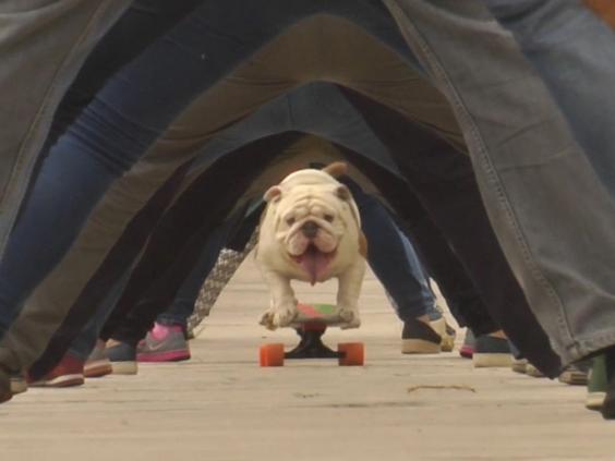 Just when you thought there was a record for everything, Otto the Bulldog sets a new one for 'Longest human tunnel travelled through by a dog skateboarder'.