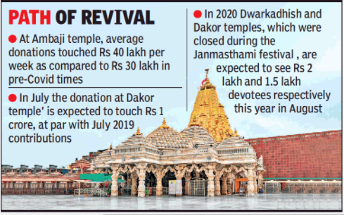 As lockdown restrictions relax, devotees are flocking to temples. Donations that had dried up when coronavirus struck the state are once again at pre-Covid levels at Somnath temple in Veraval, Dwarkadhish temple in Dwarka town, Ambaji temple in Banaskantha and Ranchhodrai temple in Dakor.