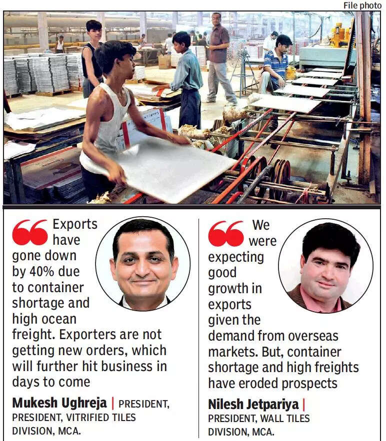AHMEDABAD: Container shortage and high ocean freight charges have started pinching ceramic tile manufacturers in Morbi, India’s largest cluster of ceramic industry. The twin blows have already eroded exports, and exporters fear more losses as new orders are drying up.