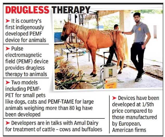 VADODARA/ ANAND: An indigenously developed electromagnetic device is coming to the rescue of animals that require physiotherapy treatment.
