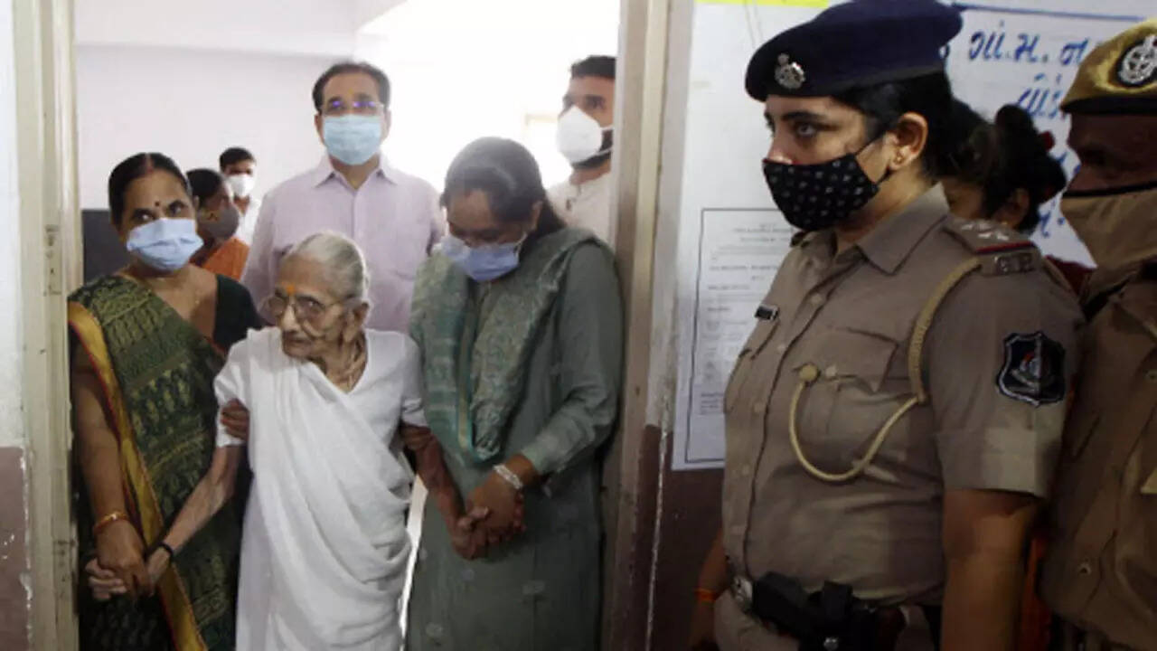 AHMEDABAD: Prime Minister Narendra Modi's nonagenarian mother Hiraba cast her vote in the Gandhinagar Municipal Corporation (GMC) elections being held on Sunday.
