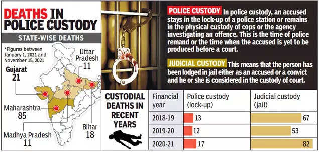 AHMEDABAD: Figures from the Union home ministry on custodial violence shows a sorry state of Gujarat, which stood second in the entire country in terms of deaths in police custody this year.
