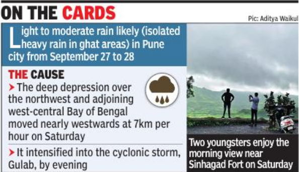 PUNE: Cyclonic storm Gulab, brewing over the Bay of Bengal, may bring isolated heavy to very heavy rain in parts of Maharashtra, especially Marathwada and Vidarbha, around the September 27-28 period.