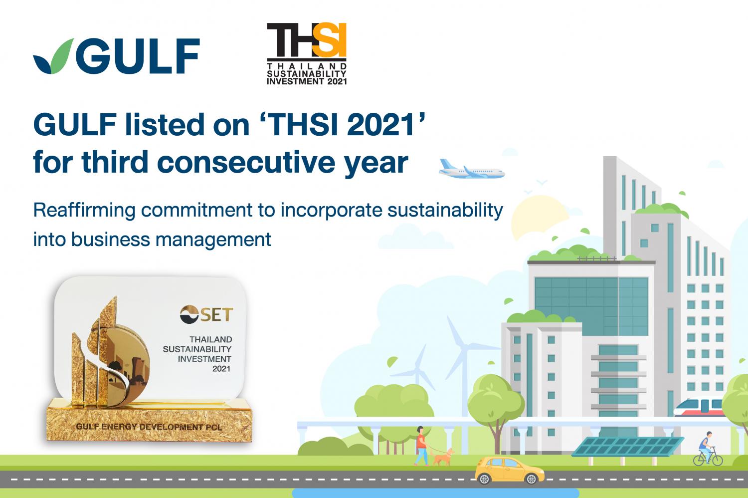 Gulf Energy Development has been put on the Stock Exchange of Thailand's (SET) Thailand Sustainability Investment (THSI) 2021 list in the resources category for the third consecutive year.