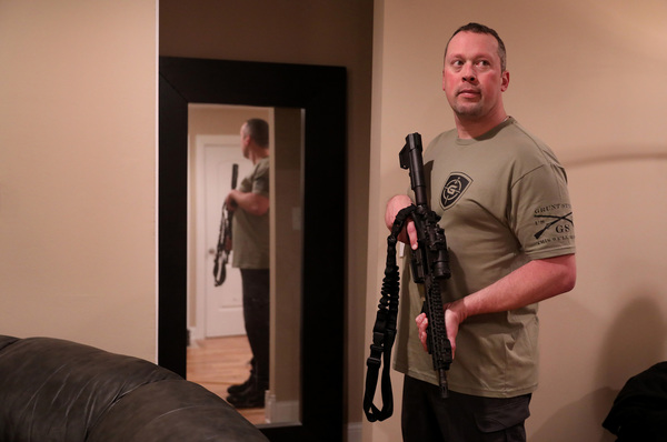 Thomas, a gun instructor, peeked out the door and saw blood in the hallway. He went to his bedroom, where a handgun and an AR-15 assault-style rifle were lying on the bed. He picked up the rifle.