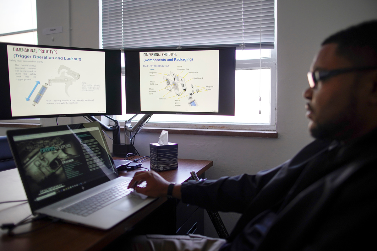 "You could accomplish some of the functionality by duct-taping an iPhone to your gun. However what we offer is the world's first truly embedded operating system," said Melvic Smith, 41, principal owner of Dimensional Weapons Systems, which bills itself as the first patented blockchain-based firearms company.