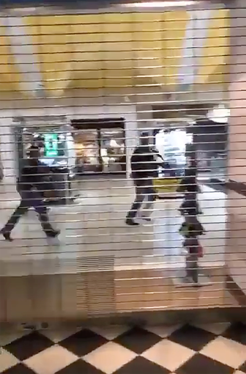 The couple sprinted through a stock room at the back of the store before huddling with other customers in a steel container in a shipping area.