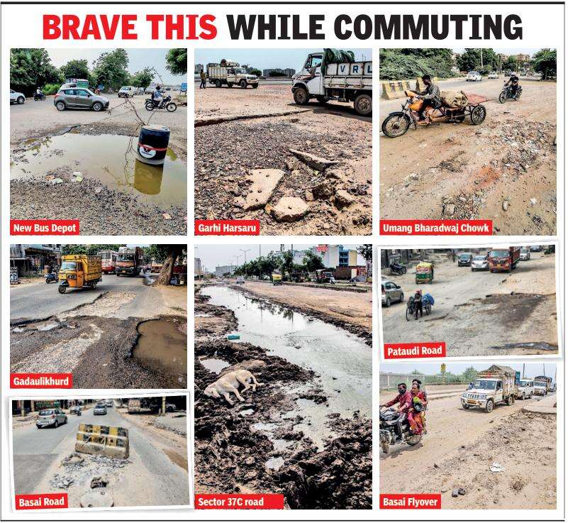 GURUGRAM: Broken and potholed roads in several parts of the city have become a pain for the commuters. Pataudi road, Basai road, Sector 37C road, internal roads in Sector 10, the stretch from Hero Honda Chowk to Umang Bhardwaj Chowk, Dwarka Expressway road are among the worst affected. And with the monsoon rains, residents say all these stretches have taken a turn for the worse and are in need of urgent repair.
