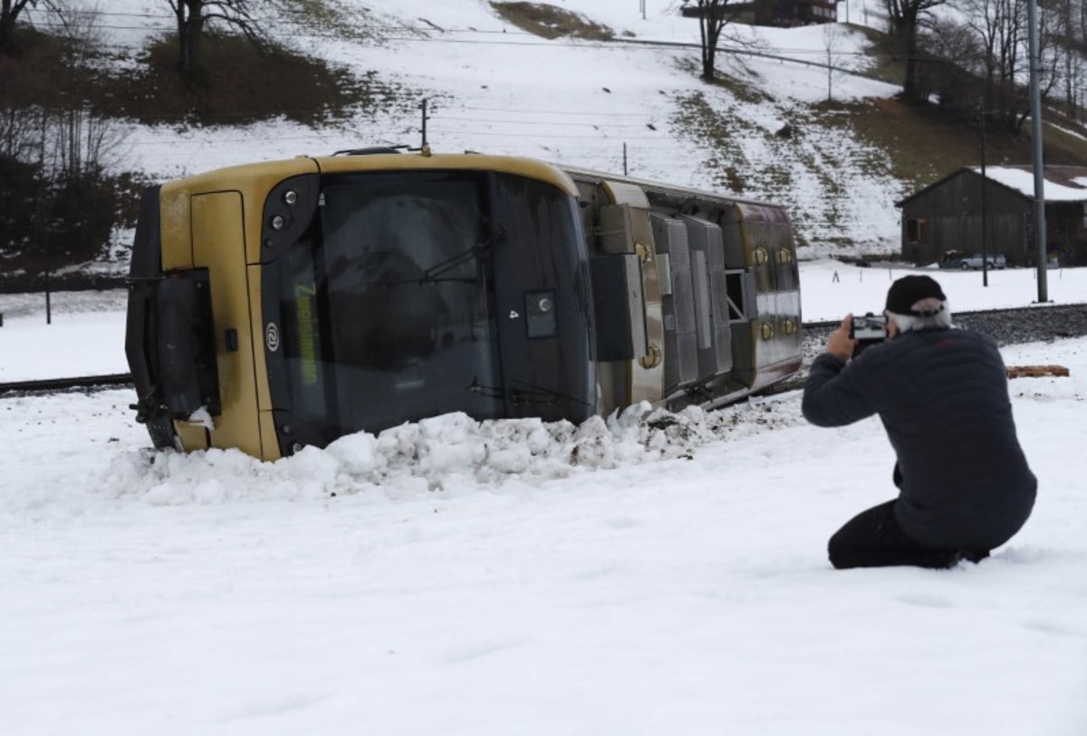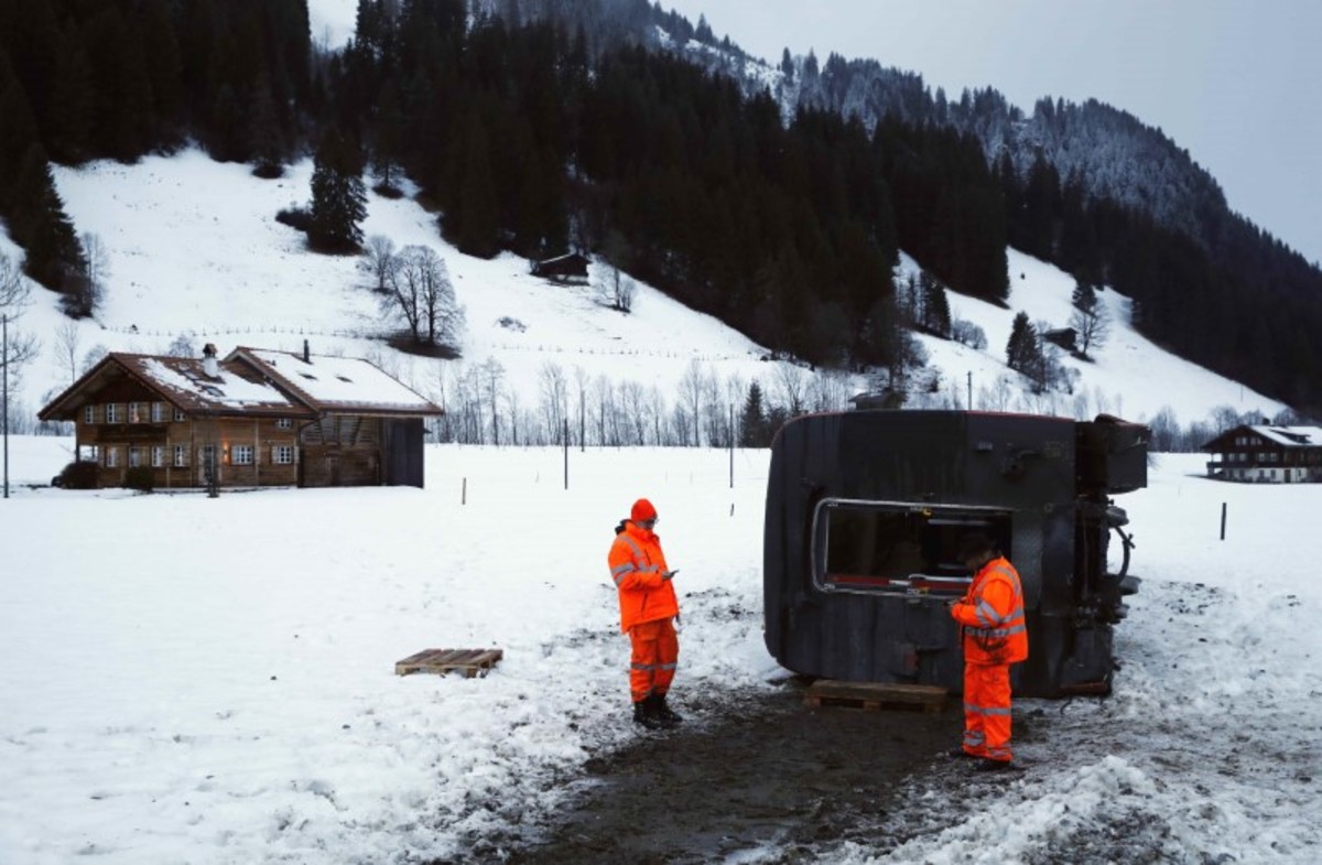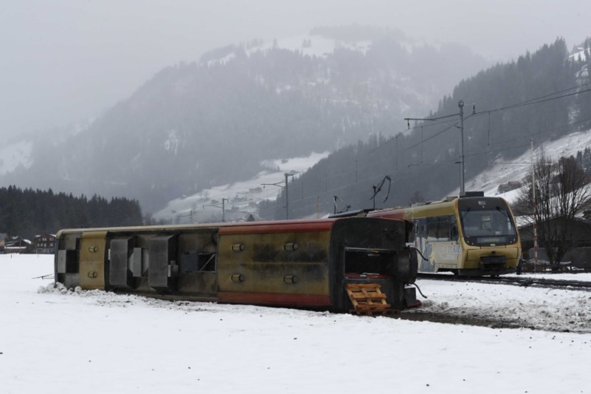 The wind derailed the lead car on the Montreux-Bernese Oberland (MOB) regional train around midday near Lenk in central Switzerland, an MOB spokesman said.