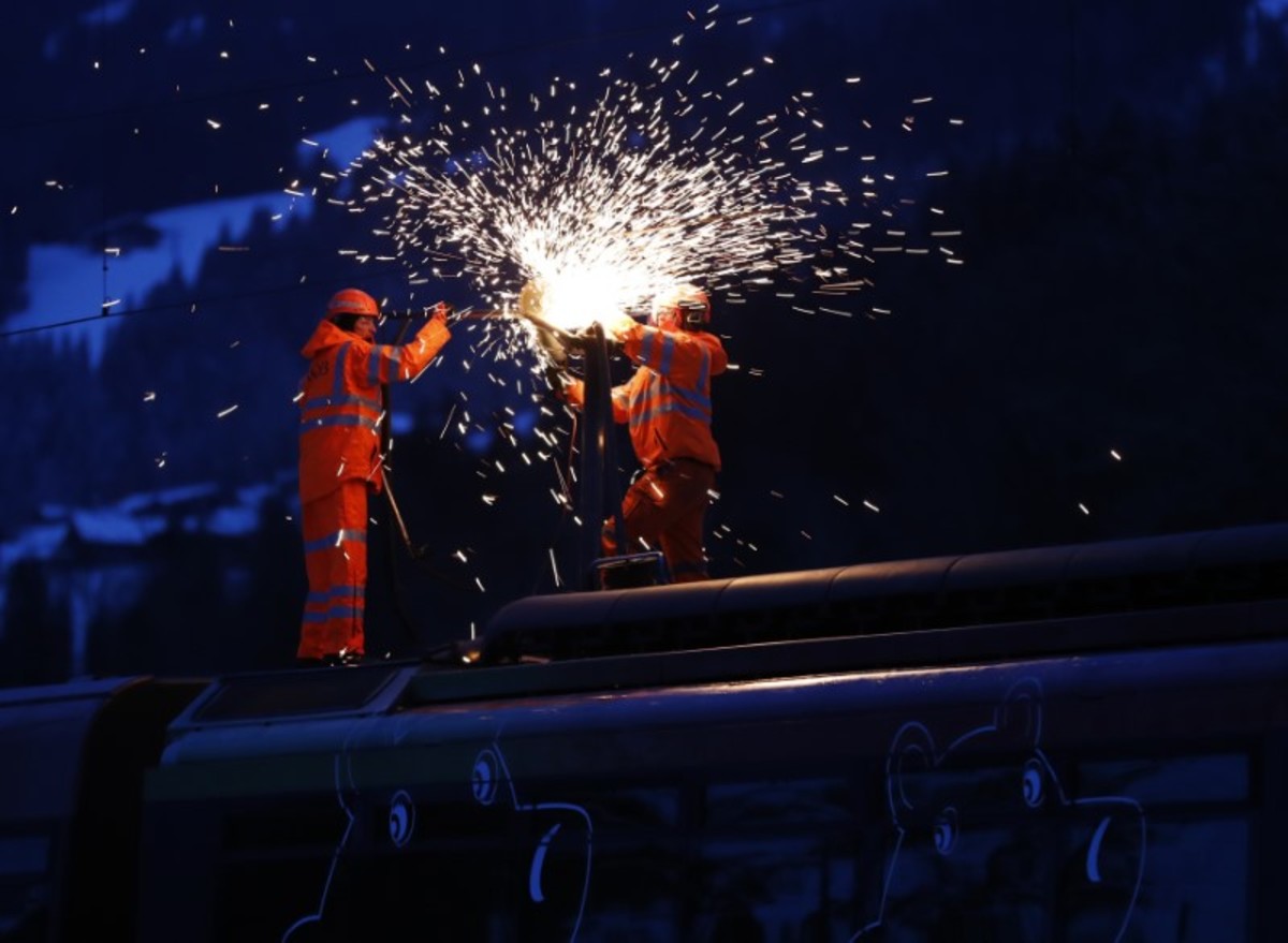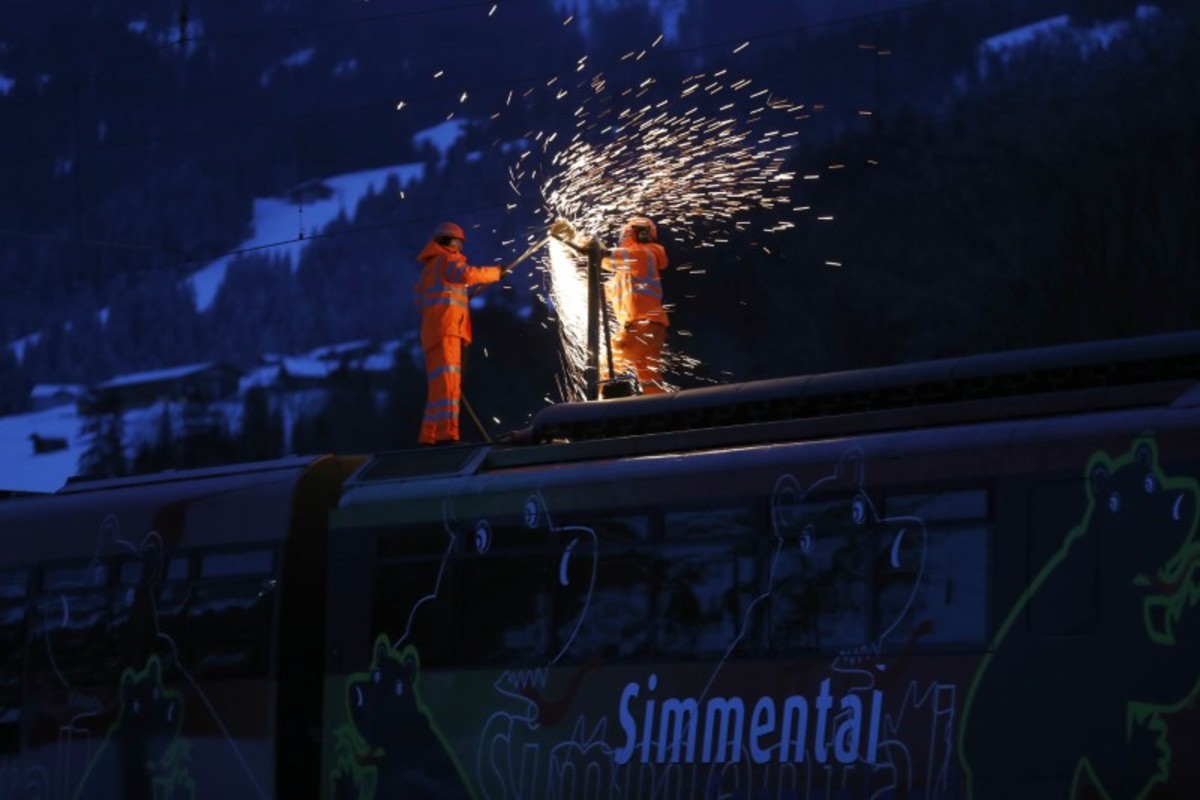 ZURICH (Reuters) - Gusting winds blew a train off its tracks, injuring eight people, as winter storm Burglind battered Switzerland on Wednesday, bringing trees down on power lines cutting electricity to thousands of homes.