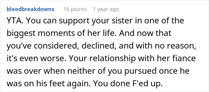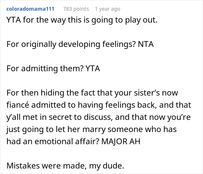 Today’s account comes from a 26-year-old man who fell in love with his sister’s fiancé. With a keen intent on keeping feelings to himself, he declined a special role in the ceremony without saying why.