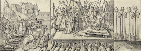 After enduring partial hanging, the victim would then be “drawn” – a process which involved disembowelling them while still alive. This act mainly targeted the organs of the abdominal cavity – including the intestines, liver and kidney, as well as major blood vessels such as the abdominal aorta.