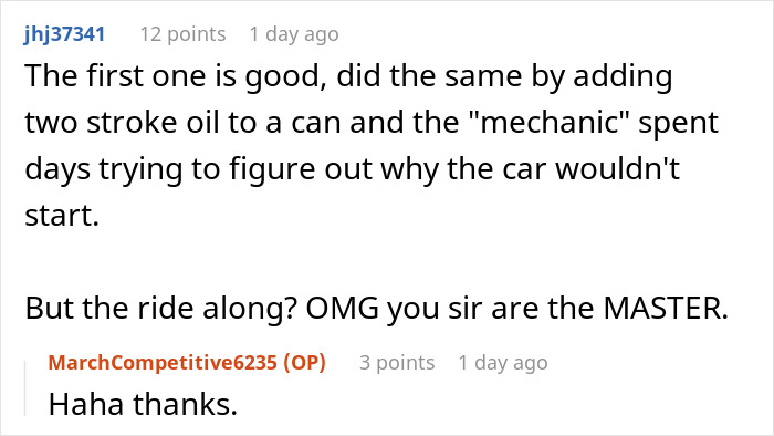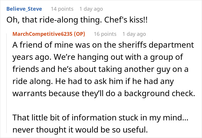 In the comments, readers celebrated the guy’s sneaky revenge but warned him to maybe keep quiet about the ride-along thing