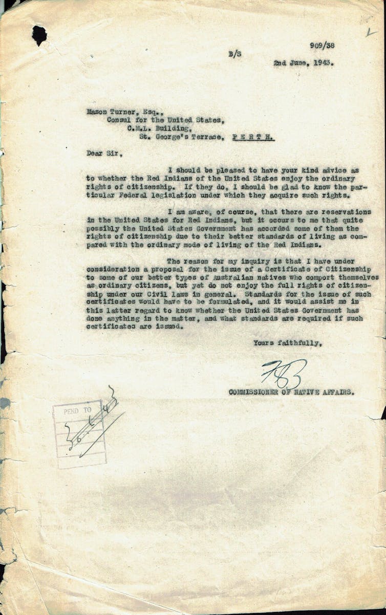 Until the 1970s, Western Australia still forced Aboriginal people to “dissolve tribal and native associations” and “adopt the manner and habits of civilised life” for two years before they could apply for citizenship under the state’s Natives (Citizenship Rights) Act 1944
