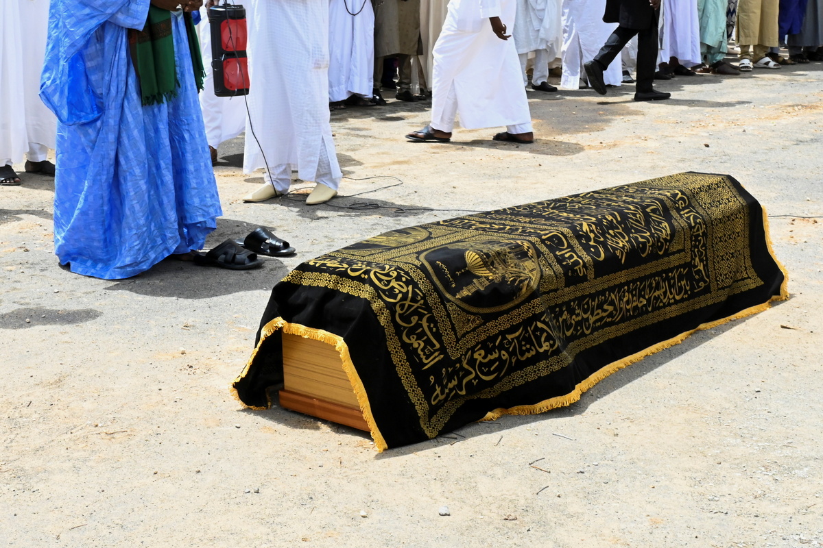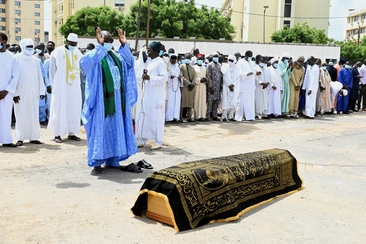 He died on Tuesday at age 79 after contracting COVID-19. About 200 people attended the funeral, many of them sporting the traditional robes and headscarves of Chad.