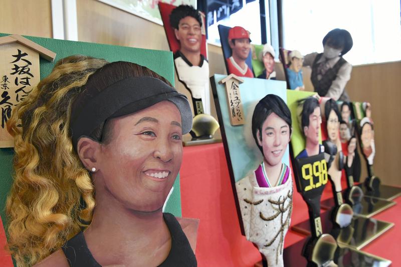 With the sports world put into limbo for much of the year due to the pandemic, traditional doll maker Kyugetsu Co. has opted to turn back the clock in a special exhibition of its novelty hagoita wooden paddles bearing the faces of top Japanese athletes.