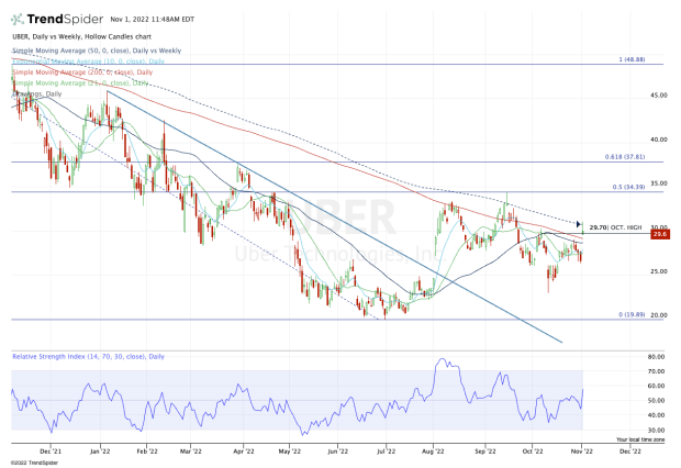 If Uber stock can clear that point, then the 61.8% retracement up near $38 is in play.