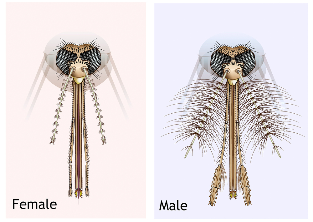And just like your hirsute old uncle, male mosquitoes have really hairy ears that make them distinct from females. Those hairs on their antennae are called fibrillae, and they help the males tune into the frequency of the females during mating.