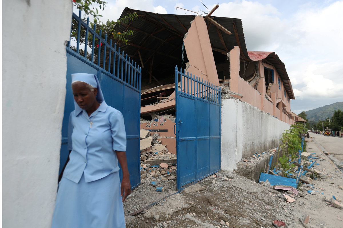 Children sit in front of houses that were damaged in an earthquake that hit northern Haiti late on Saturday, in Gros Morne, Haiti, October 8, 2018. REUTERS/Ricardo RojasA woman walks past a school, which was damaged in an earthquake that hit northern Haiti late on Saturday, in Gros Morne, Haiti, October 8, 2018. REUTERS/Ricardo RojasA nun leaves a school, which was damaged in an earthquake that hit northern Haiti late on Saturday, in Gros Morne, Haiti, October 8, 2018. REUTERS/Ricardo RojasA woman observes her home after it was damaged in an earthquake, that hit northern Haiti late on Saturday, in Gros Morne, Haiti, October 8, 2018. REUTERS/Ricardo RojasPeople are seen at their home, which was damaged in an earthquake that hit northern Haiti late on Saturday, in Gros Morne, Haiti, October 8, 2018. REUTERS/Ricardo RojasA man walks front of a school damaged in an earthquake, that hit northern Haiti late on Saturday, in Gros Morne, Haiti, October 8, 2018. REUTERS/Ricardo RojasPeople stand outside their home after it was damaged in an earthquake, that hit northern Haiti late on Saturday, in Port-de-Paix, Haiti, October 8, 2018. REUTERS/Ricardo RojasA man and two children stand on the porch of their home after it was damaged in an earthquake, that hit northern Haiti late on Saturday, in Port-de-Paix, Haiti, October 8, 2018. REUTERS/Ricardo RojasA woman looks at herself in a mirror while standing outside her house after it was damaged in an earthquake, that hit northern Haiti late on Saturday, in Port-de-Paix, Haiti, October 8, 2018. REUTERS/Ricardo RojasA tent is seen outside a house that was damaged in an earthquake, that hit northern Haiti late on Saturday, in Port-de-Paix, Haiti, October 8, 2018. REUTERS/Ricardo RojasA woman picks up rubble after her house was damaged in an earthquake, that hit northern Haiti late on Saturday, in Port-de-Paix, Haiti, October 8, 2018. REUTERS/Ricardo RojasA woman stands next to a tent she and her family uses since their home was damaged in an earthquake, that hit northern Haiti late on Saturday, in Port-de-Paix, Haiti, October 8, 2018. REUTERS/Ricardo RojasA family puts up a tent since their home was damaged in an earthquake, that hit northern Haiti late on Saturday, in Port-de-Paix, Haiti, October 8, 2018. REUTERS/Ricardo RojasA family rests on makeshift beds after their home was damaged in an earthquake, that hit northern Haiti late on Saturday, in Port-de-Paix, Haiti, October 8, 2018. REUTERS/Ricardo RojasA man stands in front of a house damaged in an earthquake, that hit northern Haiti late on Saturday, in Port-de-Paix, Haiti, October 8, 2018. REUTERS/Ricardo RojasPeople injured in an earthquake that hit northern Haiti late on Saturday, sleep in a tent, in Port-de-Paix, Haiti, October 7, 2018. REUTERS/Ricardo Rojas