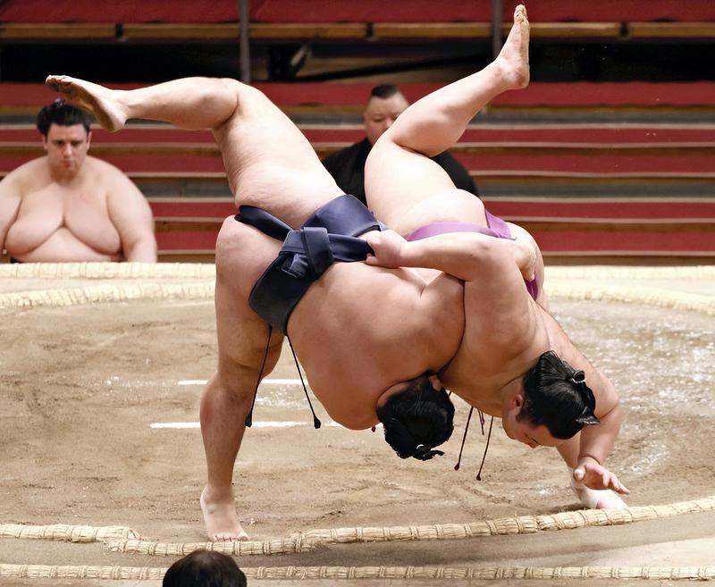 In other action, ozeki Takakeisho, looking to avoid his first losing record in the three tournaments since he returned to the second-highest rank, evened his slate at 7-7 by pushing out No. 5 maegashira Onosho.