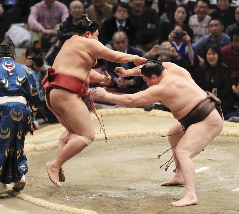 Meanwhile, ozeki Takakeisho, who has already assured he will remain in the second-highest rank that he regained for this tournament, shoved out Mitakeumi (6-7) for his ninth win. Mitakeumi dropped to 6-7, meaning his rank will be on the line when he faces Hakuho.