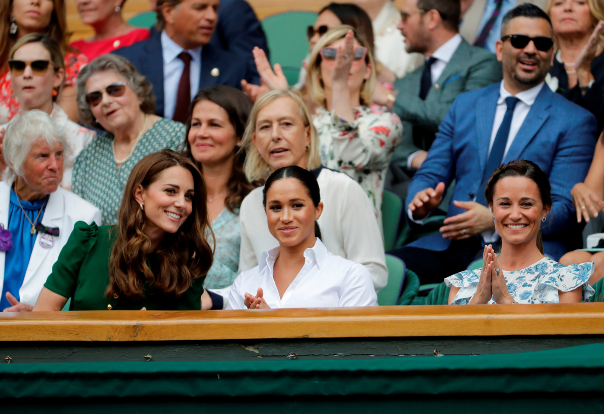 Tennis - Wimbledon - All England Lawn Tennis and Croquet Club, London, Britain - July 13, 2019 Britain's Catherine, Duchess of Cambridge, with Meghan, Duchess of Sussex, in the Royal Box after the final between Serena Williams of the U.S. and Romania's Simona Halep Laurence Griffiths/Pool via REUTERS
