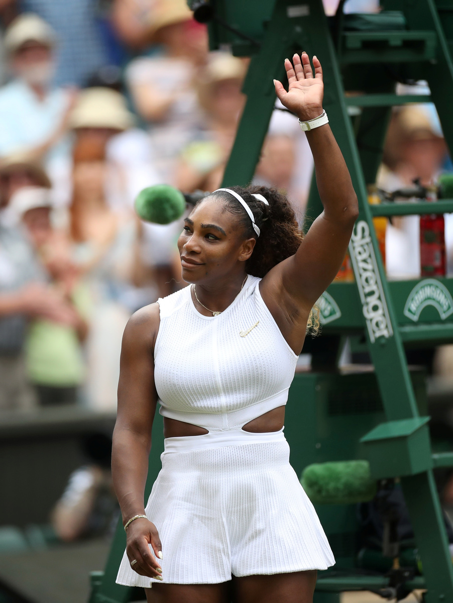 Tennis - Wimbledon - All England Lawn Tennis and Croquet Club, London, Britain - July 13, 2019 Romania's Simona Halep is interviewed by Sue Barker as she holds the trophy after winning the final against Serena Williams of the U.S. REUTERS/Carl RecineTennis - Wimbledon - All England Lawn Tennis and Croquet Club, London, Britain - July 13, 2019 Romania's Simona Halep poses with the trophy as she celebrates winning the final against Serena Williams of the U.S. REUTERS/Toby Melville/PoolTennis - Wimbledon - All England Lawn Tennis and Croquet Club, London, Britain - July 13, 2019 Serena Williams of the U.S. holds a trophy after losing the final against Romania's Simona Halep REUTERS/Carl RecineTennis - Wimbledon - All England Lawn Tennis and Croquet Club, London, Britain - July 13, 2019 Romania's Simona Halep celebrates with the trophy after winning the final against Serena Williams of the U.S. REUTERS/Carl RecineTennis - Wimbledon - All England Lawn Tennis and Croquet Club, London, Britain - July 13, 2019 Romania's Simona Halep celebrates winning the final against Serena Williams of the U.S. REUTERS/Carl RecineTennis - Wimbledon - All England Lawn Tennis and Croquet Club, London, Britain - July 13, 2019 Serena Williams of the U.S. gestures to the fans after losing the final against Romania's Simona Halep REUTERS/Carl RecineTennis - Wimbledon - All England Lawn Tennis and Croquet Club, London, Britain - July 13, 2019 Romania's Simona Halep celebrates winning the final against Serena Williams of the U.S. REUTERS/Hannah McKayTennis - Wimbledon - All England Lawn Tennis and Croquet Club, London, Britain - July 13, 2019 Serena Williams of the U.S. reacts during the final against Romania's Simona Halep REUTERS/Carl RecineTennis - Wimbledon - All England Lawn Tennis and Croquet Club, London, Britain - July 13, 2019 Britain's Catherine, Duchess of Cambridge, with Meghan, Duchess of Sussex, and Pippa Middleton in the Royal Box ahead of the final between Serena Williams of the U.S. and Romania's Simona Halep Ben Curtis/Pool via REUTERS