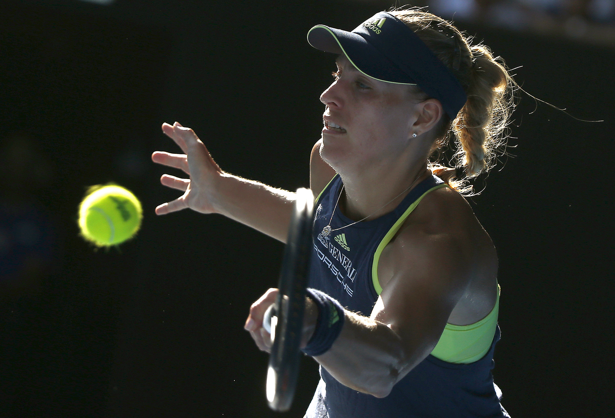 Halep began to feel the strain, shooting angry looks at her coach Darren Cahill as Kerber broke for 6-5, then led 40-15, only for Houdini-like Halep to extricate herself with some courageous deep hitting.