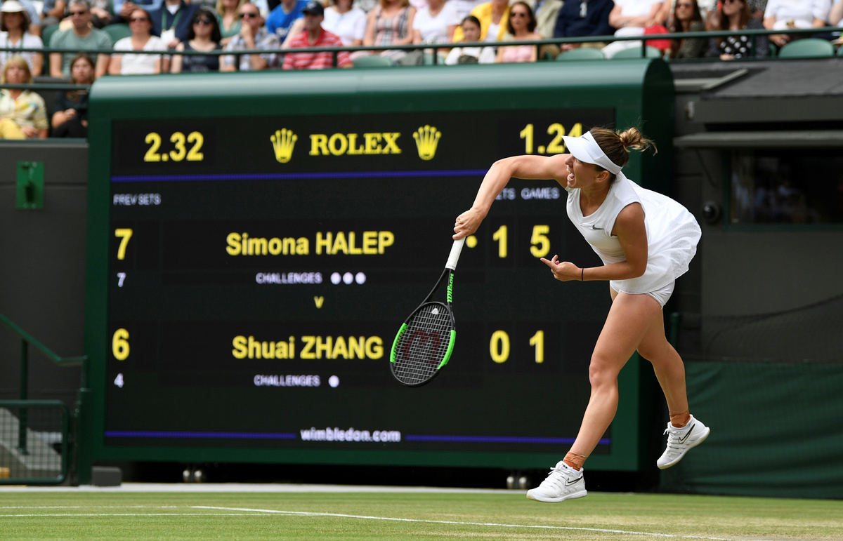 Zhang's head then dropped and the errors flowed as Halep rattled through the remaining games at a canter.
