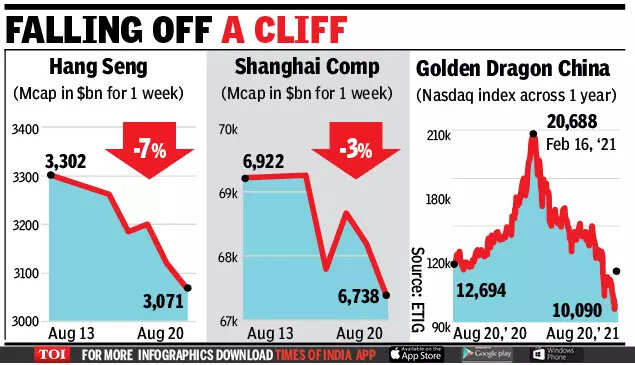 More than $560 billion in market value has been wiped off Hong Kong and mainland China exchanges in a week as funds capitulate out of once favoured stocks, unsure which sectors regulators will target next.
