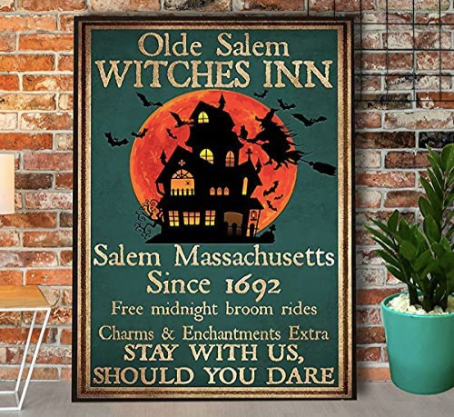 Aperiy Retro Pewter Logo Witch Old Salem Witch Halloween Logo Decoration Wall Bedroom Best Gift for Friends 12x16 inch