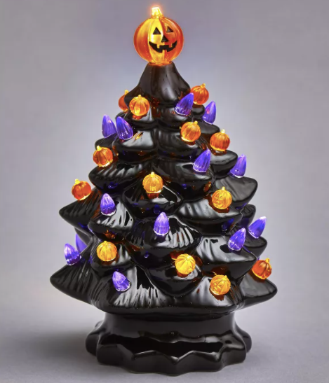 The Christmas-style Halloween decor trend has gained footing in the last couple of years, and these vintage-style ceramic trees are perhaps the best manifestation of it. These from target come in two different sizes so you can choose which best fits your space, and we think anyone will be charmed by the handsome little pumpkin sitting on top.